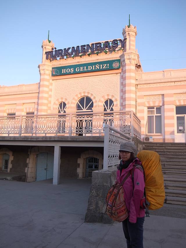 迎着日出我们来到了土库曼巴希。火车站还是很高大上的。