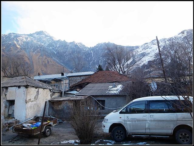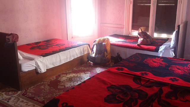 司机在小镇帮我们安排好了住宿,住宿很便宜,因为是当地价,60RMB,不过洗澡很麻烦。而且条件一般,但是外观和大堂很豪气,而且还有个荒废的游泳池,典型苏联时期的产物。