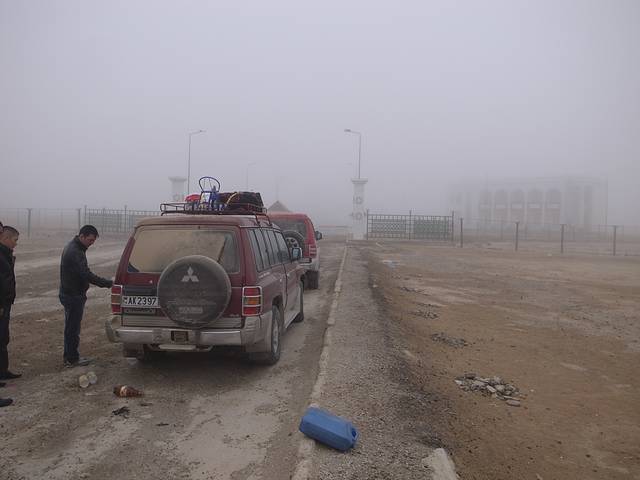 去这个边境的唯一选择就是包越野车,当地人也不列外,迷雾中的后面就是土库曼斯坦海关了。全程过关手续都是由司机代劳的,所以我们也没有受到什么为难,就是行李还是拿出来看了一下,电脑和手机的照片也翻看了一下(手机照片从出伊朗前已经全部备份掉了),所以也轻松过关。
