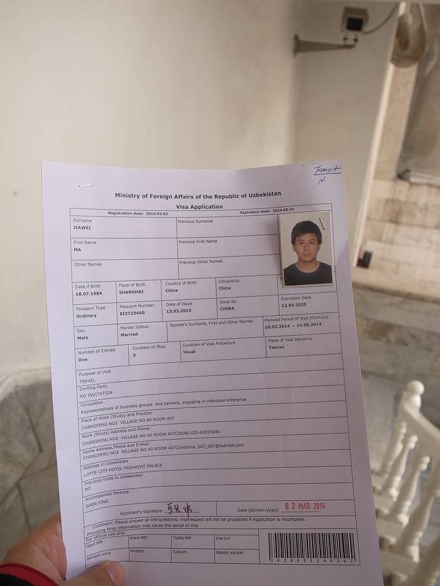 无奈只能再去大使馆申请3天的过境签,50美金,但是不能当场填报,得在乌兹别克斯坦签证网站上填写资料信息然后打印出来才行,于是在周围找能办这个业务的店,居然还真被我们找到了。