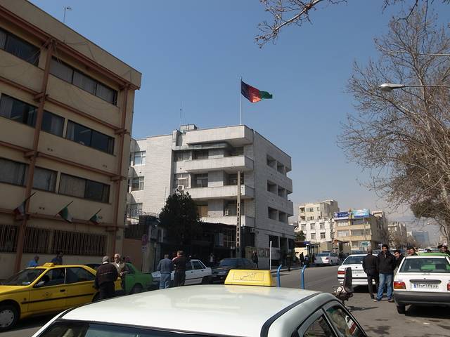 阿富汗签证地址算是最容易找的,地铁下来就能看见国旗迎风飘扬!