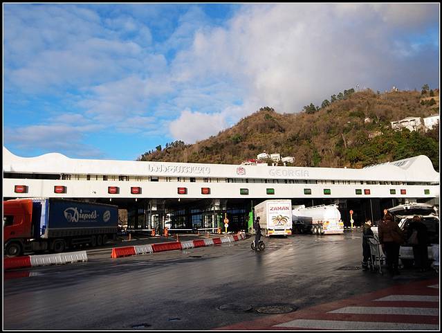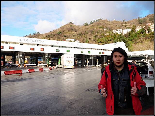 8点到的海关门口,雾气很重,海关还么开门,在司机的默许下,赶忙下次拍照留个影。