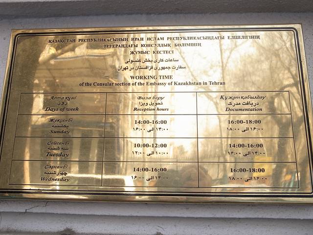 过境签的话更容易,因为邻国就是中国。我们在伊朗办理的是5天的过境签,20美金,2个工作日取,大使馆很舒适,像大户人家的客厅一样,这样我们很惊讶。整个过程轻松愉快,PS:有了哈萨克斯坦的签证,才能继续申请乌兹别克斯坦和土库曼斯坦的过境签,所以大家如果要陆路回国,一定要第一个办理哈萨克斯坦的签证。这样最节省时间。