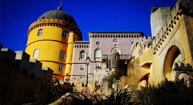 作为世界文化遗产的佩纳宫是位于辛特拉山,与摩尔人城堡遥相辉映,形成鲜明对比的一座彩色宫殿,它是葡萄牙女王玛丽雅二世与丈夫费迪南德智慧与创造力的结晶,始建于1840年,竣工于1885年,结合哥德式、文艺复兴式、摩尔式、曼努埃尔式建筑风格于一身,由粉红、洋红、淡紫、明黄、靛蓝等颜色粉饰而成,就像山顶一颗璀璨夺目的明珠。佩纳宫中部有一座由珊瑚打造的大拱门,华丽而梦幻,门顶上供奉着海神雕塑,穿过拱门,可以在露台上眺望北边上头上的摩尔人城堡。城堡内设有博物馆,还原了王室日常起居、工作、会晤、休闲空间的全貌,供游人参观,体验过去葡萄牙贵族的生活。