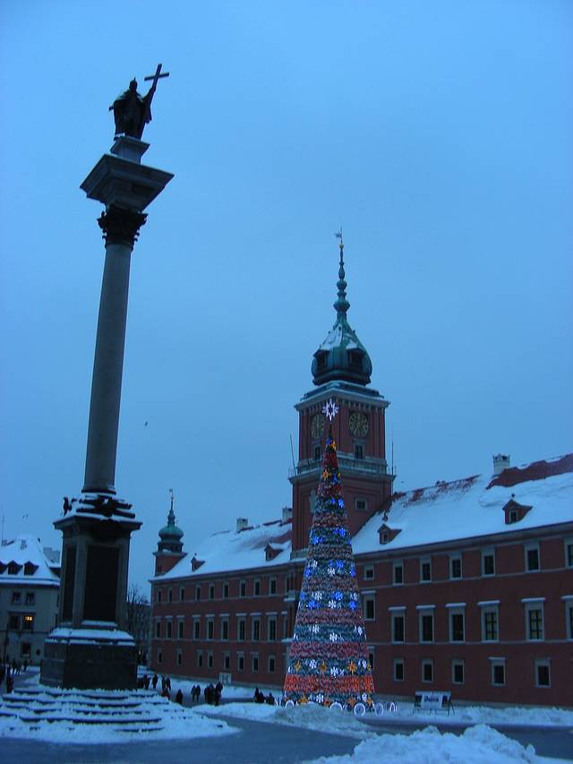 我订的旅馆在旧城中央广场和王宫城堡广场之间,位置非常优越。从这里向南相隔一个院子,就是王宫广场了。17世纪初,雅加洛王朝绝后,来自瑞典的瓦萨家族波兰国王西格蒙德三世,把都城从克拉科夫,迁到华沙,从此这座王宫城堡就是波兰国王的王宫,同时也是贵族议会的地点,就像伦敦的威斯敏斯特宫。当然,现在的王宫城堡和广场,都是战后按照原样重建的。(这位波兰国王西格蒙德,还曾经当过12年瑞典国王,跟一代天骄瑞典国王古斯塔夫·阿道夫是堂兄弟,两个人都声称拥有波兰和瑞典两国王位,所以波兰和瑞典打了几十年仗,这也是波兰近代衰落的开始。详见拙作〈欧洲近古名将传系列 第一部 德意志三十年战争中的绝代双雄 古斯塔夫-阿道夫和华伦施泰因〉)。