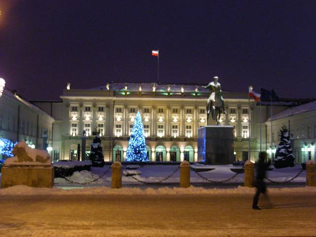 首先,面向南方,右手边(西侧)离开克拉科夫大道2百米的地方,有波兰国家剧院和歌剧院,在演出季(一般是每年9月到第二年5月),基本每天不是有戏剧就有音乐会或者歌剧。我在华沙呆了两天两夜,在国家歌剧院看过一出威尔第的Nabucco,取材自圣经故事,波兰国家歌剧团出演。回到主干道,再向南,左侧看到了总统府,1955年华沙条约在这里签字,大家知道华约和北约,是冷战时期的两大军事集团,其中华约的诞生地,就在这座波兰总统府。
