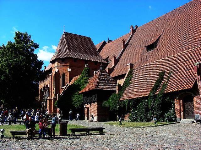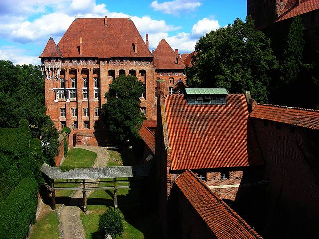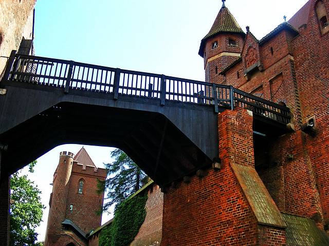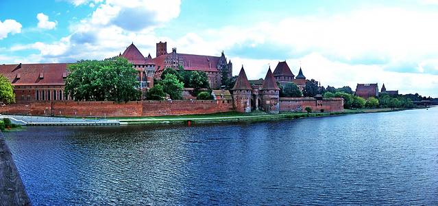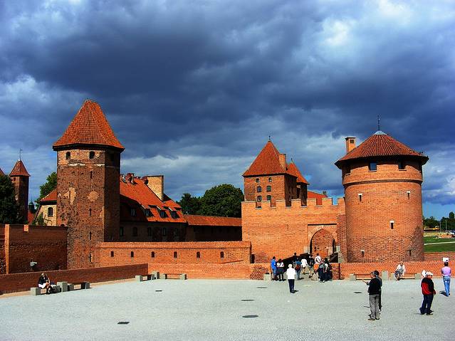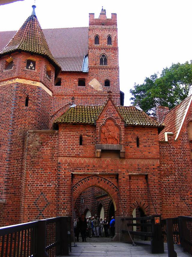 条顿骑士团当然愿意啦,他们在13世纪初,总部还在东方的时候,就把力量逐步向欧陆北部转移,其间还经历了抗击蒙古大军拔都西征的败仗,不过总体来说,这一百年是骑士团在这里站稳脚跟的时期。然后,1309年,骑士团总部从威尼斯,正式迁到格但斯克以东50多公里的马尔城堡Malbork。我的第一站就是参观骑士团总部Malbork堡。