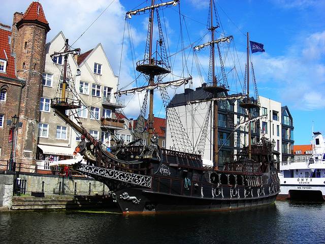 下船从码头步行大约1公里到达开战纪念区,拍些照片,1个小时以后再搭乘另一艘帆船“黑珍珠号”(波兰文Czerna Perta)返回城里。