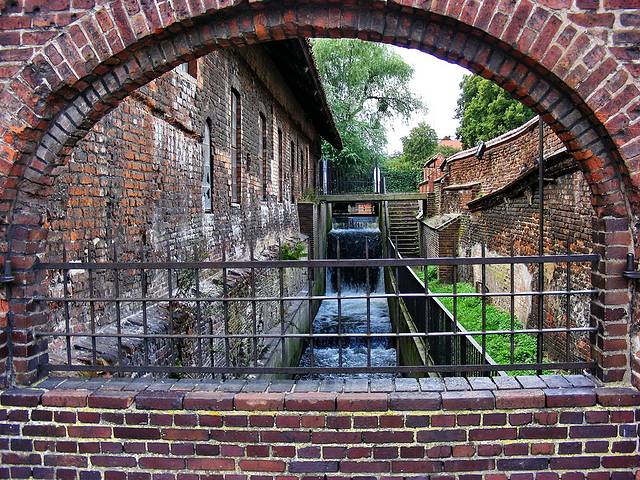 这是一座旧式磨坊,横跨在小河上