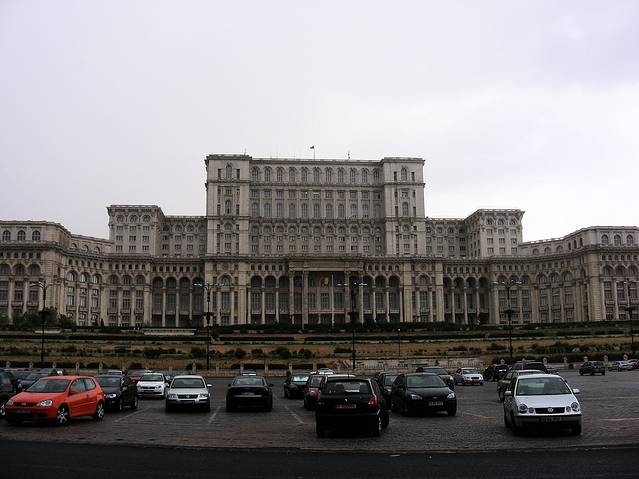 从城市北端的博物馆区,我再用出租径直驰往城南的议会大厦。罗马尼亚议会大厦,绝对值得游客专程参观,它虽然算不上古董,由齐奥塞斯库建成于1980年代,但是非常宏伟,内部富丽豪华。这栋坐落在小山顶上的巨型建筑,号称全世界第二大公用建筑,规模仅次于五角大楼,内部的装潢,可是比五角大楼漂亮多了(五角大楼在911之前可以入内参观,我进去过)。