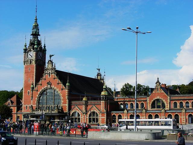 格但斯克的火车站是十九世纪浪漫主义时期的建筑,红砖房子在蓝天映衬下古雅而大方。这座车站的设计,被原样照抄到法国阿尔萨斯地区的科尔玛城Colmar,所以在科尔玛,你能看到一模一样的火车站。