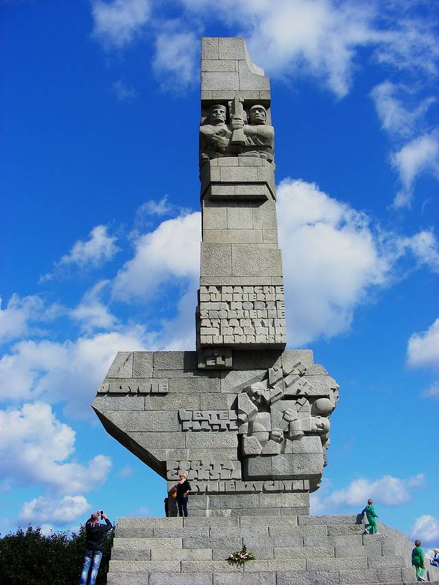 从水边,可以坐古代三桅帆船,往返河流入海口的Westerplatte半岛,二战开始的地方。这个拼写,大致的意思可能是“Western Plate”,“西边的盘子”,因为格但斯克城本身是河港,离开真正的入海口还有半个小时的水路,就像上海外滩离开真正的长江入海口距离还远一样。而Westerplatte就在入海口处,是二战之前波兰军队的一处防御阵地和兵站仓库,波兰守军不到200人。Westerplatte是保护河口的屏障。因为消除“但泽走廊”是希特勒入侵波兰的主要理由之一,1939年9月1日凌晨4点45分,德军一次大战前的旧式战列舰“石勒苏益格-荷尔斯泰因号”炮轰波军要塞,这就是第二次世界大战的第一枪。