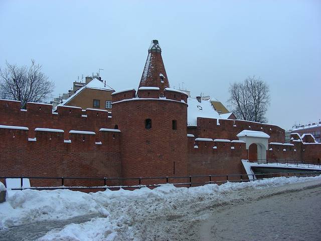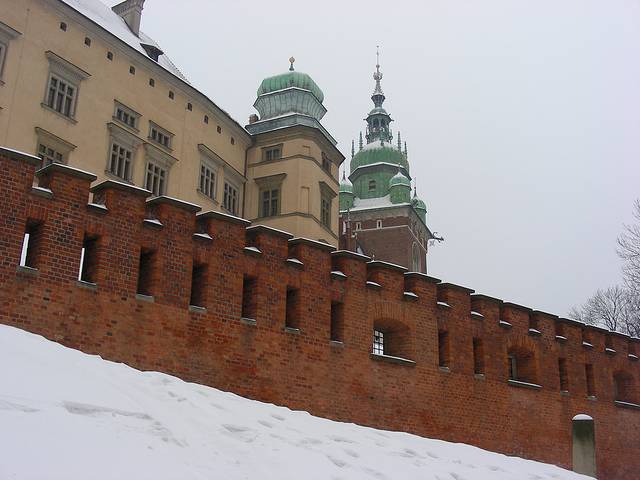 回到华沙新城和旧城,华沙的旧城完全是战后重建,重修的城墙只建了北门的一部分,但是红砖的工事很漂亮,波兰的1月,大雪纷飞,在积雪的城墙上来回走一段,拍照的红白颜色对比,还真是挺漂亮