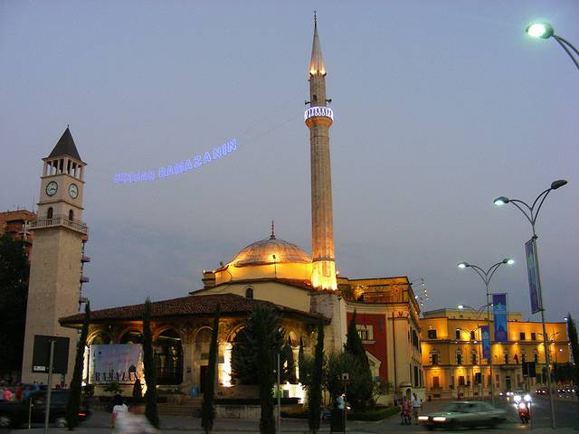 我总以为阿尔巴尼亚交通不便,闭关锁国,肯定是贫穷落后,没准还象朝鲜一样,今天仍然坚持信奉“纯正的”共产主义。到了那边一看,满不是那么回事。其实人家1991年就已经是议会民主制了,现在地拉那的生活水平肯定比克罗地亚差得远,好像也不如萨拉热窝,不过还是挺惬意的,夜里在广场上走走,街边咖啡馆吃正宗的意面,喝咖啡吃蛋糕,夜里熙熙攘攘的,当地人生活得还挺滋润。