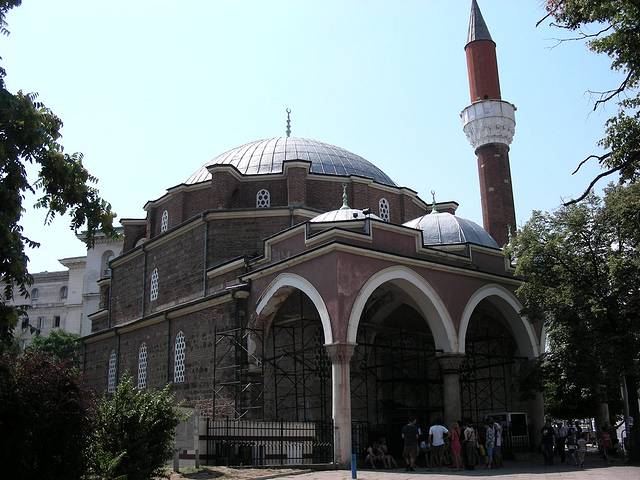 从市场出来,我在市中心正好碰到索非亚tourist information每天组织的免费城市徒步游,就跟着导游一路听讲解。这个free tour每天中午前后每小时都有好多组,导游都是说英语的志愿者,你可以提前在tourist information center签个到等待,也可以象我这样,碰上了就加入他们的群里去。在差不多城市圆心的地方,有个看上去很土耳其风格的小清真寺和附带的浴池。这算是当年土耳其帝国统治留下来的纪念品吧。