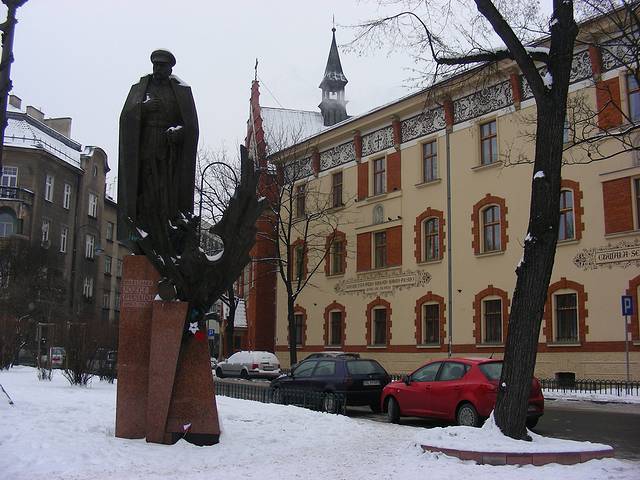 广场中心那根石柱上立的国王,是瓦萨王朝的西格蒙德三世,就是他把首都从克拉科夫迁往华沙。王宫城堡广场,标志华沙旧城的结束。越过王宫广场再向南,走上克拉科夫大道Krakowskie Przedmidscie,我一路上用Rick Steves指南的介绍,按图索骥,找到很多的历史性建筑和纪念碑。