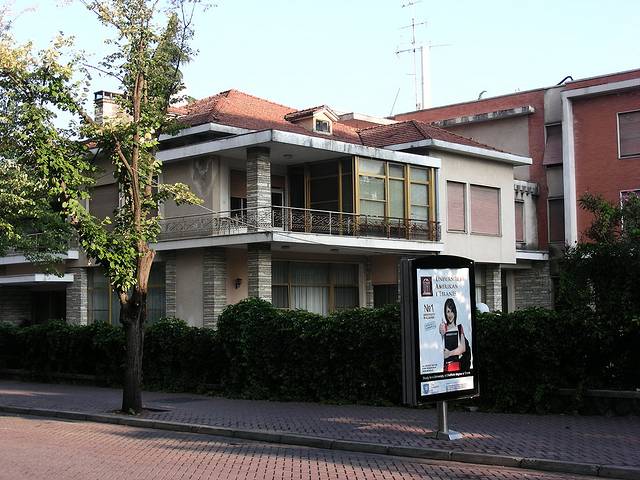再沿着大道向南走,下一座建筑是阿尔巴尼亚总理府,当年霍查的办公大楼。右手一大片花园式的街区很幽静,绿化非常好,在霍查时代,这片区域有哨兵,普通人不得接近。这是阿尔巴尼亚当年领导人的住宅区。出于好奇,我还专门过去给霍查当年的住宅拍了张照片。