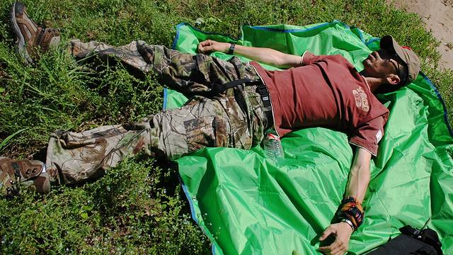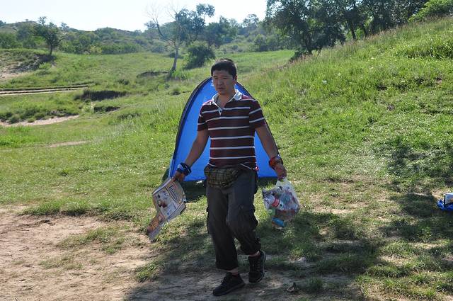 最踏实的是老爷子,呼呼大睡呀,一点没醒,帐篷都倒了,身体被帐布包裹了一圈睡在那儿纹丝不动!得了,就这么着吧甭折腾他了。