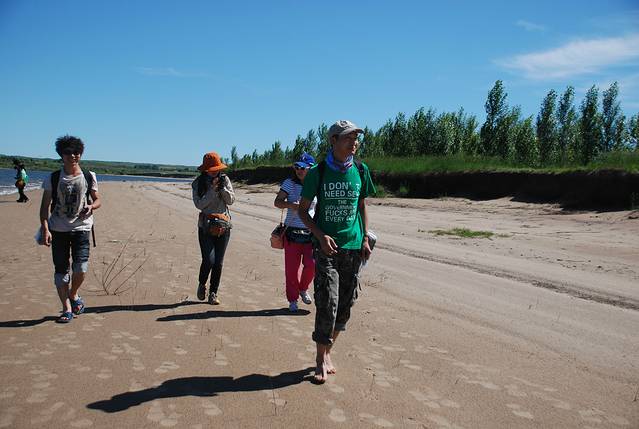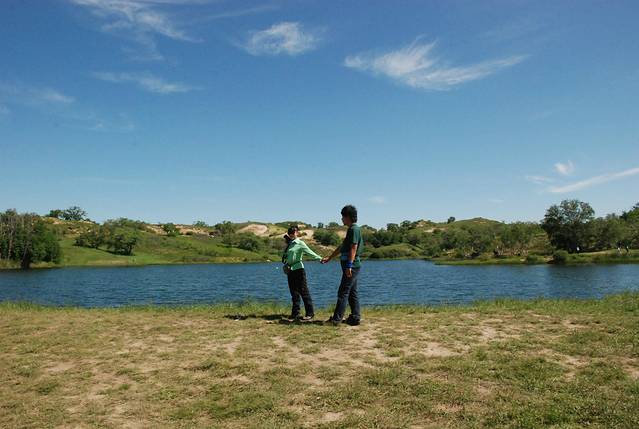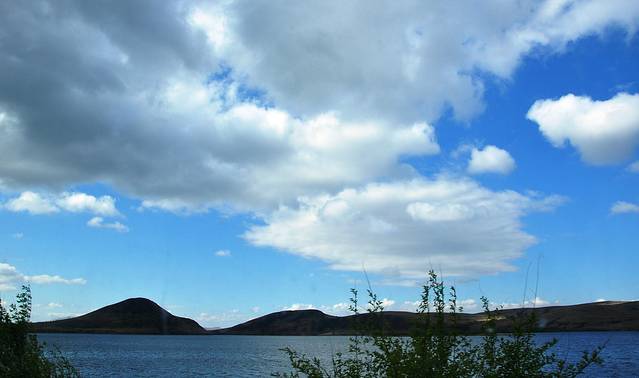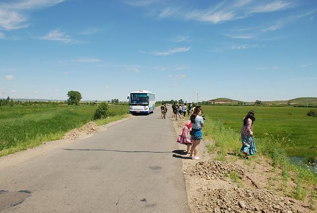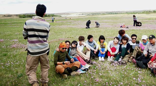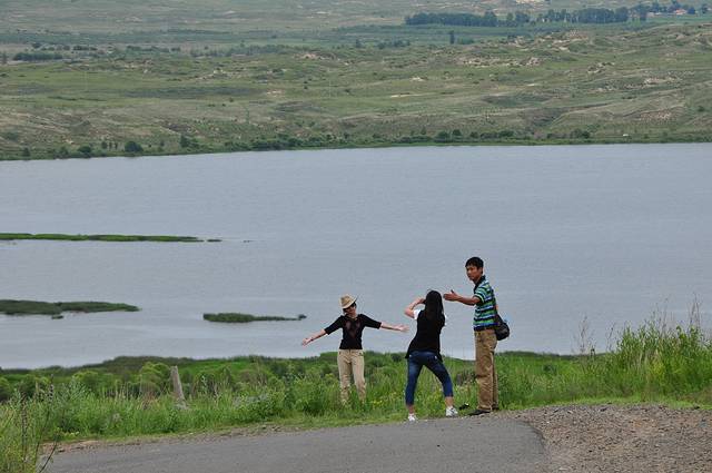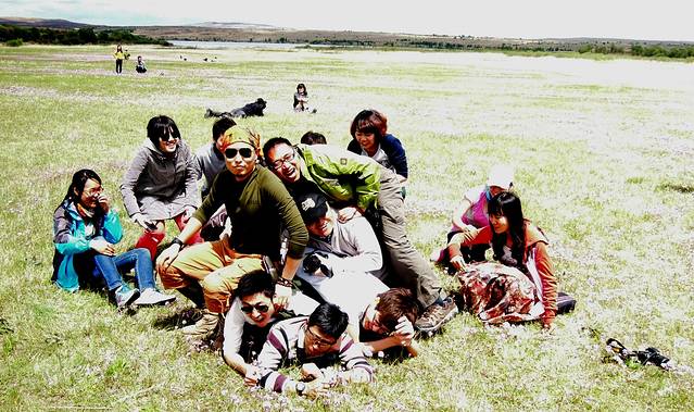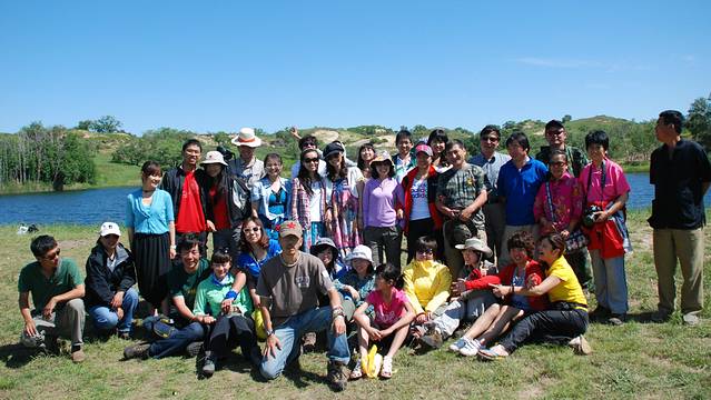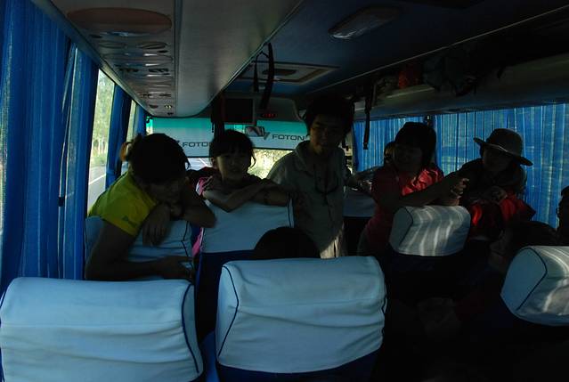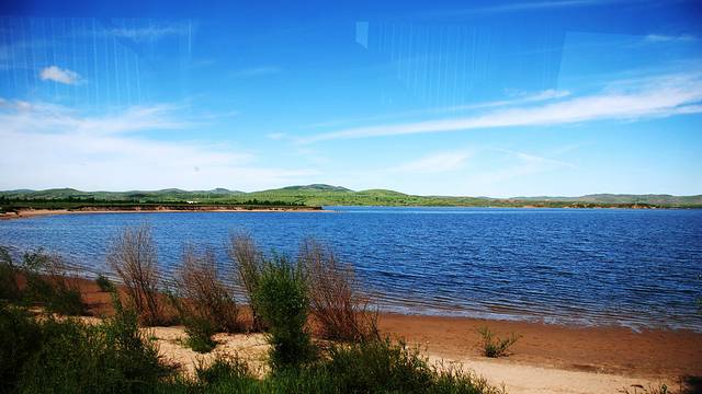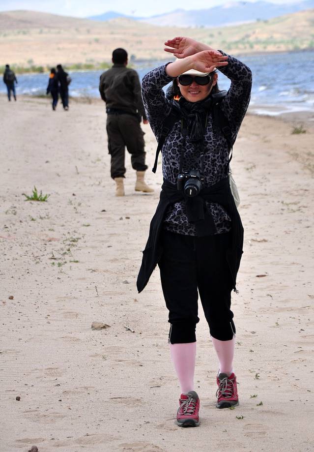 大家在大巴车前稍事休息,(13点左右吧)等着队员陆陆续续地赶到目的地后上车,我们的行程还很紧张呢啊,我们还要坐着大巴车沿着多伦湖转一圈,到湖的对岸(西岸)去领略一下西山湾的全貌--领队说,那边的风光更好!