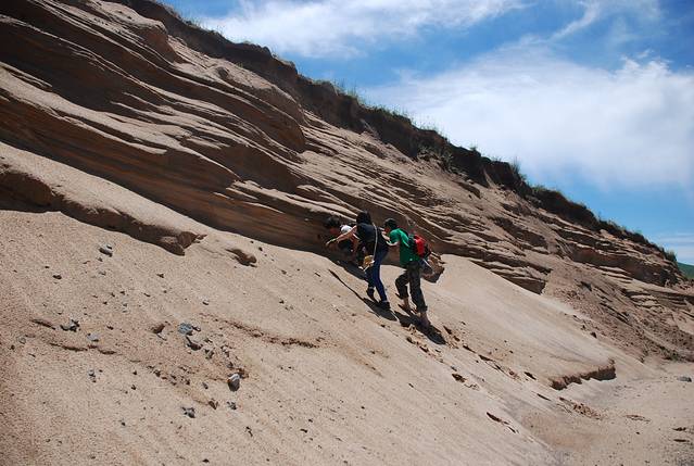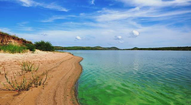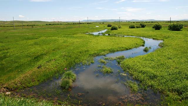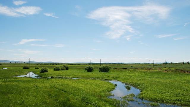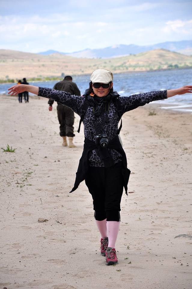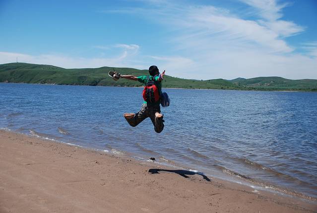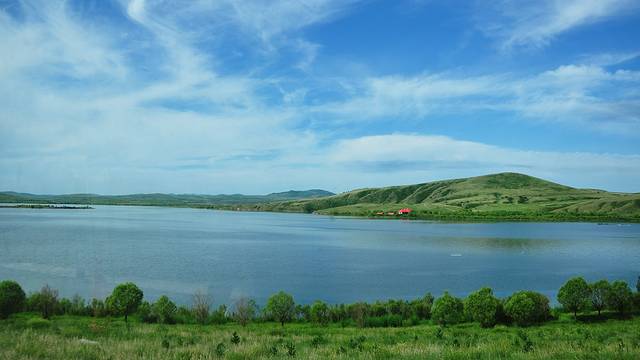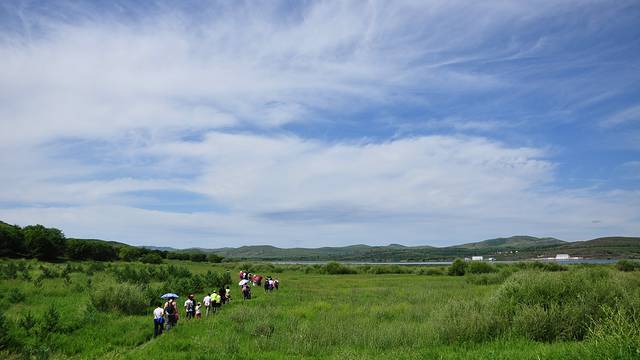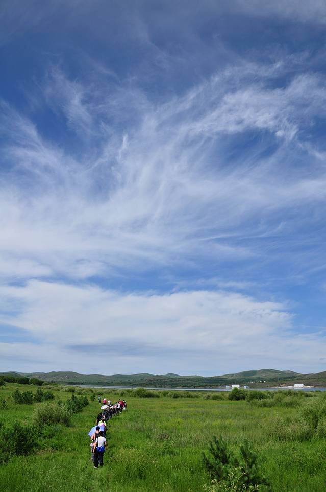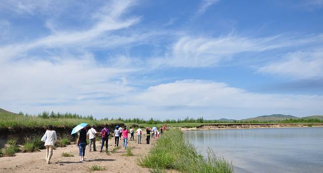 领队带着队员下车后徒步游览多伦湖,让大巴车绕行到终点等大家(这围着多伦湖东岸半圈儿的徒步大概在15公里左右,历史4-5个小时吧)。