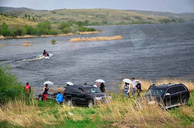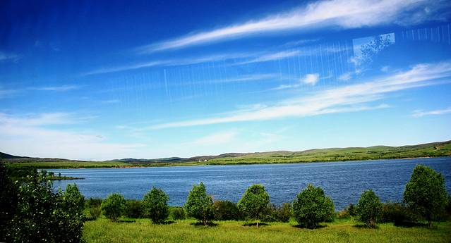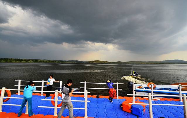 这一次的多伦湖之行,由于当地要在此举办自行车赛,所以不让游客徒步环湖了。坐着大巴倒也省力,一站一站地拍照游玩。这次还在多伦湖上坐游艇飞驰了一把过瘾。