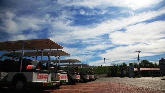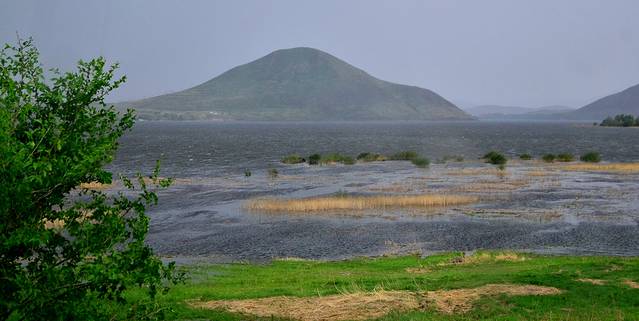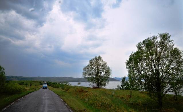 开始的时候天色还好,就在大家玩的兴高采烈的时候,突然间乌云压顶,雨点就砸了下来。队员赶紧往大巴车上跑,而我一边撤退一边回看那戏剧性的乌云和天色,不停地按着快门。