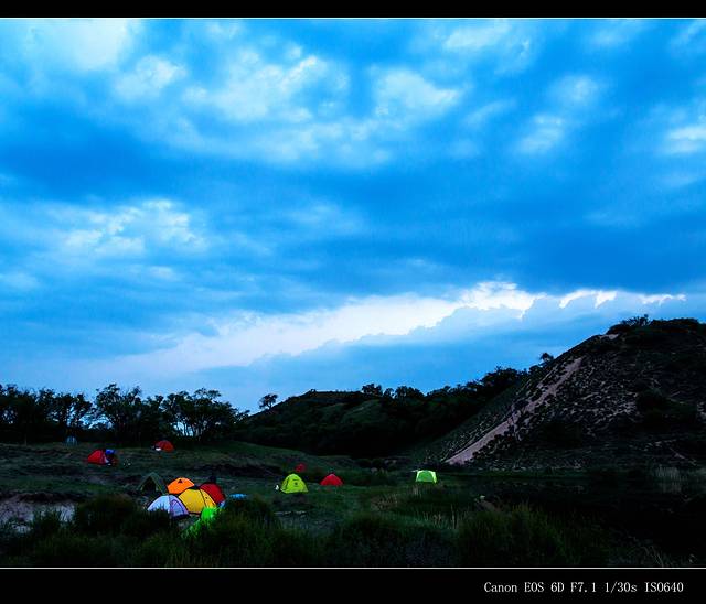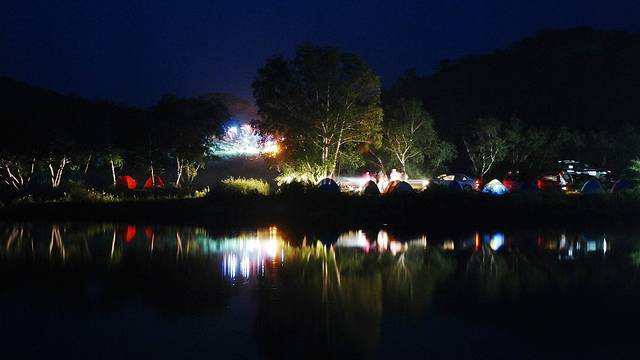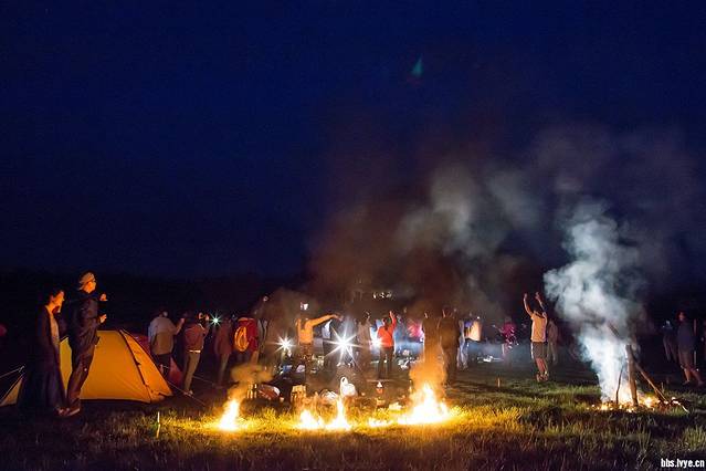 所以我们没有赶上最热闹的扎营拾柴集体动手串签子烤串儿的过程,到的时候几乎快晚上8点了。