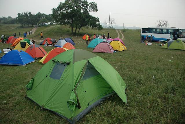 我们一行人因为到得晚,所以营地选择相对偏一点。我看到领队组的人也在忙来忙去地在帮忙。