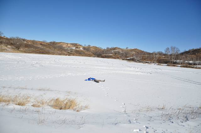 我也累趴在雪地上了,不过还是很欣慰,整整两个小时了。