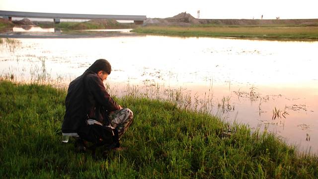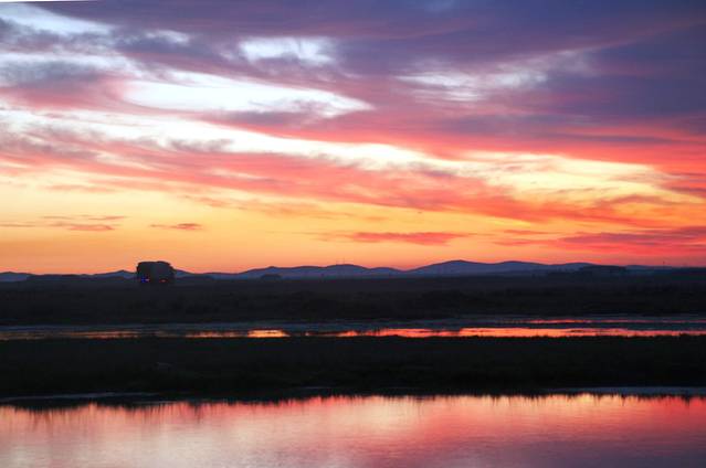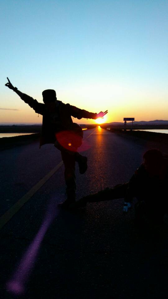 大概凌晨4点半左右吧,领队提高了嗓门喊大家醒醒,天边已经隐隐泛白,喜欢拍照的赶紧抄家伙赶到路基下的河滩上做准备啊!