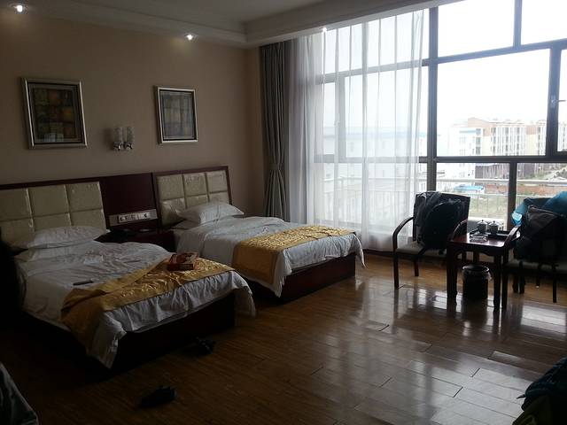由于端午是三天假期,所以行程和以往稍加不同:第二天早起拔营后才驶回多伦县城,入住四星级宾馆(名字我忘了,一会有照片),老享受了!!分房后下来吃午饭,饭后再去多伦湖(西山湾)。