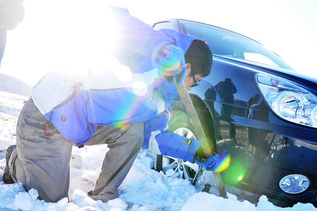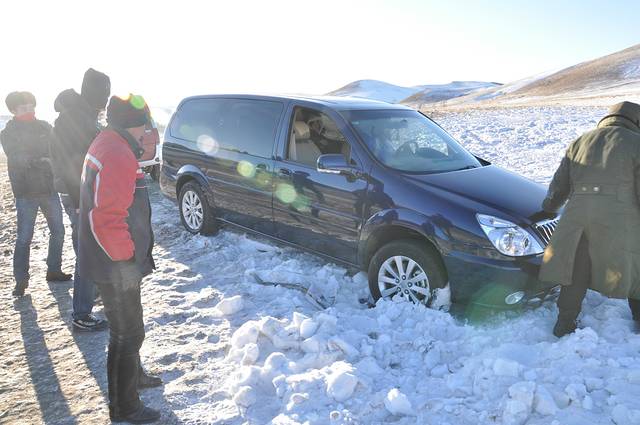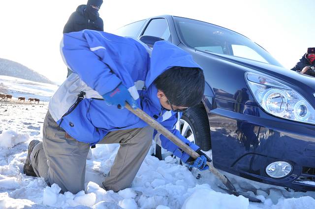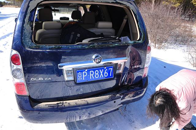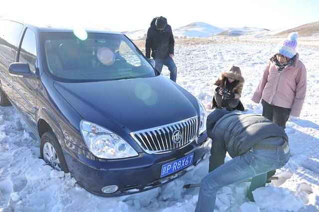 可能是我们兴奋过头了,一不留神公务舱就撞进雪堆里,怎么就是弄不出来,后来从村里找来一辆拖拉机才把车给拽出来,只是带雷达的后杠一下也给撅折了,感觉挺心疼挺可惜的,看着懒人倒是一脸没事儿似的。