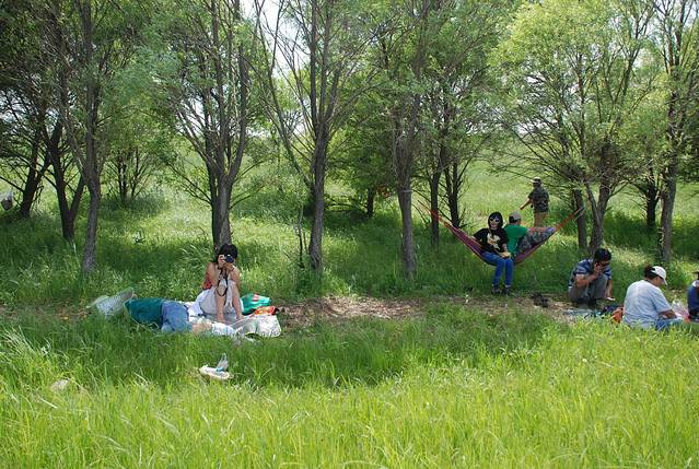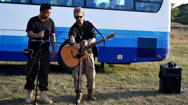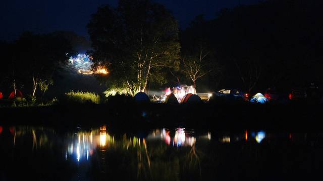 天色还未擦黑,我们已经敞开了吃喝烧烤,那过程不用记录也能想象的出来吧?我从不沾酒的人,也喝了点啤酒。俗话说:酒壮怂人胆儿,我也就斗胆助兴地自弹自唱起来,后来气氛一热烈,大家都跟着我一起高唱《新长征路上的摇滚》《花房姑娘》等等等等,虽然未必有多好听,但那种感觉还是很难忘却的。如果说多年来我的户外经历中有几次非常开心忘乎所以无所顾忌尽情嗨皮的话,这次算一回吧.....