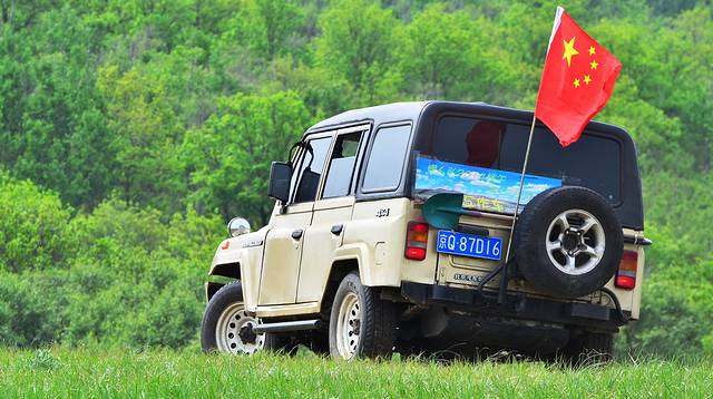 没有后风挡的缺点就不用我说了,天越来越晚,温度越来越低,也别穿塞罕坝林场了,原路返回到多伦县城,找个没关门的小超市,买了一块塑料花桌布和一卷胶带糊在后风挡上,您想想那个模样吧!