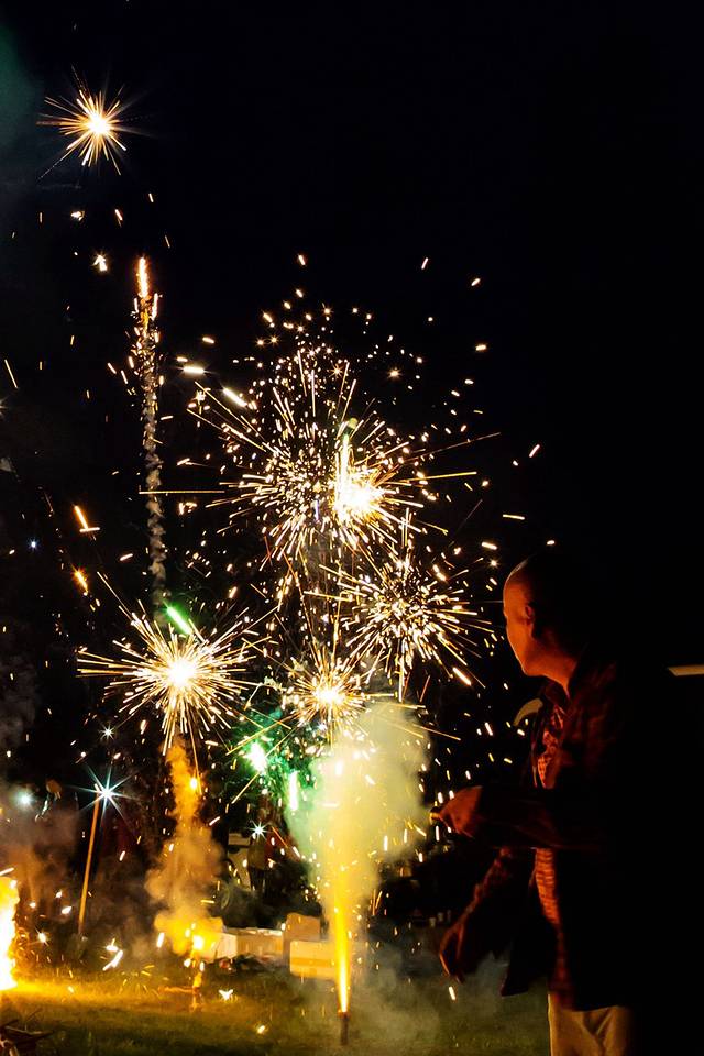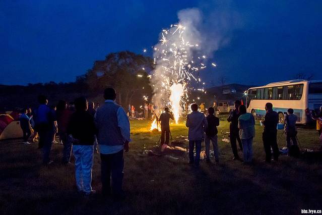电话还没有挂掉,看到左边夜空中突然地,绚烂的烟花腾空而起,异常夺目,久久地给我指明方向(看来我是开过了)。我这一虚荣,好家伙,拿轿车当越野了,叮咣叮咣地就驶进露天“会场”。