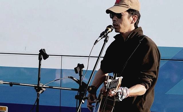 一个不起眼儿的中年男子,很瘦很黑,上身一件绿T恤,下着浅棕色水洗布裤子,软沓沓褶妈似的,沓着一双感觉应该很舒适但看起来模样着实不俊的轻便鞋。