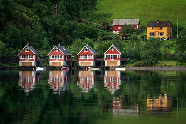 佛莱姆小镇实际上并不离奥斯陆很近,而是坐落在艾于兰峡湾的中心地区,小镇隐藏在三面大山的怀抱中,这里被人们称为“离上帝最近的地方”。之所以推荐这里,是由于这一带有着童话般的自然景致,也是最代表挪威风景的地方。这个人口只有400人的小村镇,每年却吸引了达100万人次的世界各地游客慕名而来。 走进小镇,你会发现这里的空气异常清新,仿佛到了一座天然氧吧,这里的阳光也特别明媚。这里拥有最美丽的峡湾景观、俊秀的群山,还有成片的果园和古朴的乡村建筑。人们可以在自行车租赁点租辆自行车环游小镇及周边,领略这里诗画一般的风光。
