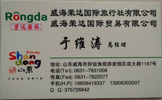 我们订的四联票220和海驴岛(原价100)就找的荣达旅行社(下面名片),提前打下面的手机电话,加他手机号微信,在大众点评搜“动物园”会显示有240的团票,把身份证号码和验证码截屏微信给他,到第一个景区后每张票返现20,也就是220一张,所有景区儿童票都按1.3米来算,1.3以上收成人票,1.3以下收5元/人保险费,保险费需在景区自己购买,旅行社不管,买四联票的儿童票时,一定提前告知售票人员是买“四联票的儿童票”, 否则会开成单个景区的儿童保险,那我们就吃亏了。这四个景区都用这一张儿童票,切记要带好!!