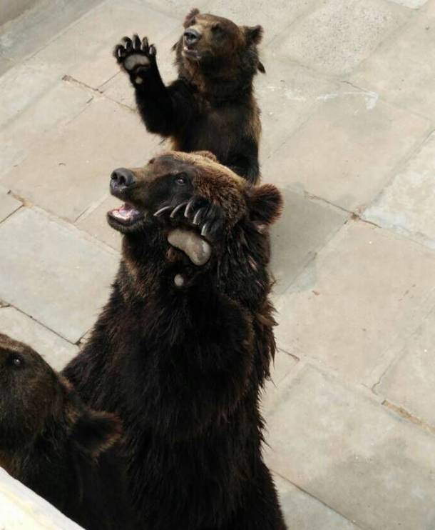 听到“吃苹果举手”就乖乖举手的棕熊。。。