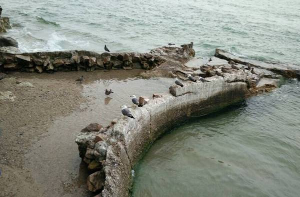 码头上游泳的人很少,不像青岛海边密密麻麻。。偶尔可以看到几只海鸥从码头海上飞过。。