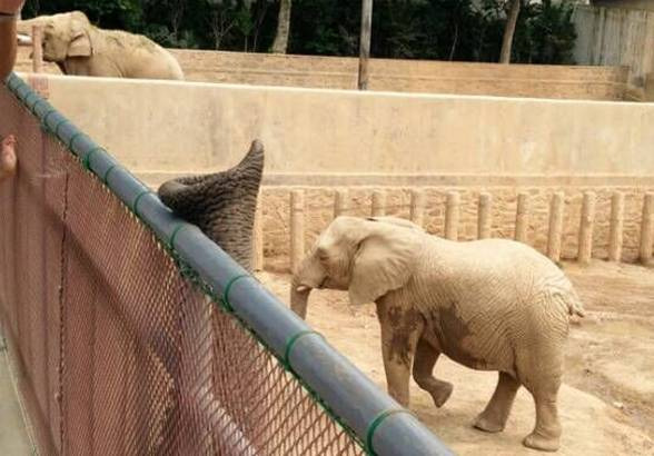 要草吃的大象。。看到有人路过鼻子轻而易举的就上来了。。。