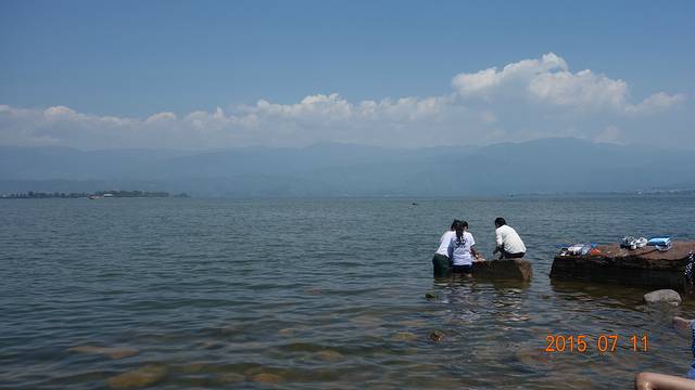 抚仙湖山水宜人,湖水清澈见底。酒店沙滩的水很浅,沙细软,戏水、捉鱼,好不欢喜。后到禄充景区,门票15元,人多、船多,反而没了下水的兴致,虽有人工沙滩,但规模太小,不太好玩,中午在湖边又吃了好吃的土豆饭。下午经呈贡前往昆明,去了滇池,一路多家蓝莓园,80元一公斤。十分有感人类的伟大,有着高原江南之称的广阔滇池,曾被人类污染成一池臭水,一片绿污,如今经过人类的治理,水虽不清澈,但她不再恶臭,脱掉了绿衣。漫步滇池边,美丽的风景、百年的桉树,让人心旷神怡、留恋忘返!