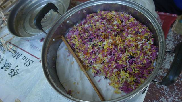 壮家人五色糯米饭,象征吉祥如意、五谷丰登,有幸品尝。