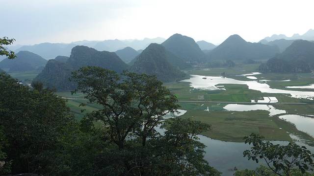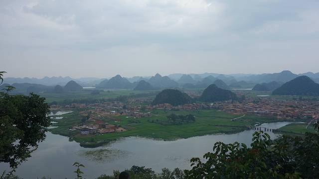 乘坐小舟游荷塘,打水仗,花本还没盛开,也无心观花,一路弱势,被泼得落花流水,开心无比。虽穿了雨衣,做了防护,可是我们一身,还有包都被水浸得湿透,还好,相机、手机包装虽湿,但没受影响。回农家乐换洗休息后,上到青龙山,观了普者黑全景,但因为天气原因,没看到日落,留下些遗憾。还有,看着青龙山下凌乱的小摊,到处乱扔的垃圾,普者黑村的脏乱,心里就有些堵!