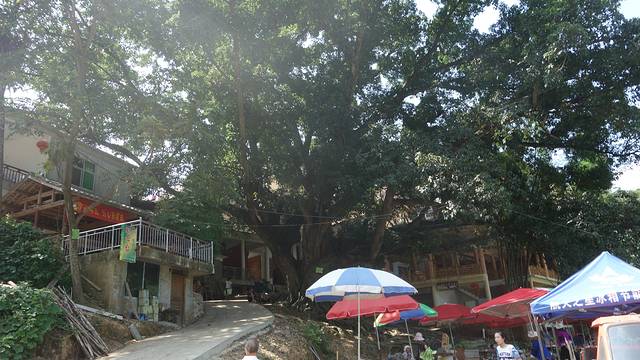 那颗大榕树,树冠很大,树根盘踞很宽,能容许多人树下拍照,大树面前,人好渺小。