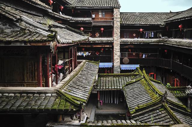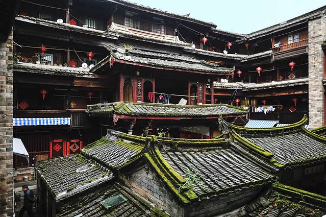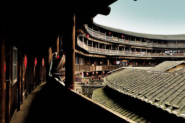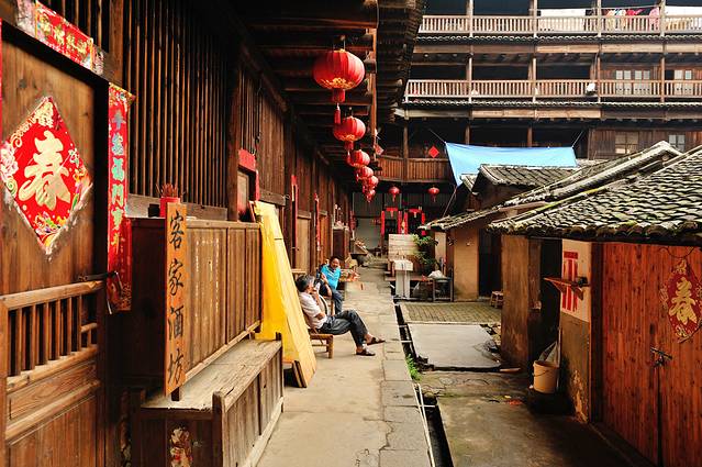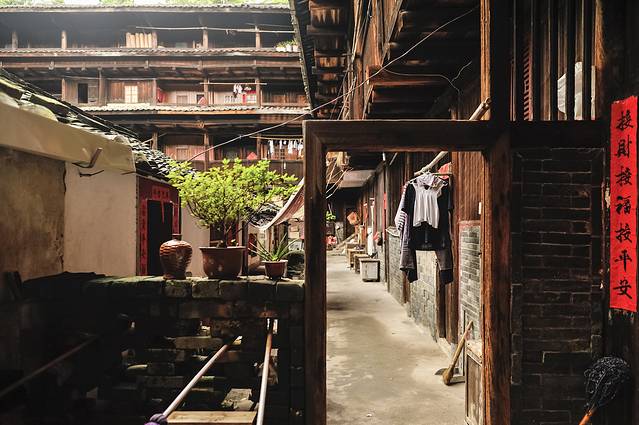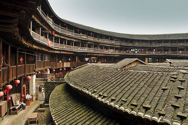 承启楼弥漫着浓郁的乡村生活气息,甚至被日本学者誉为“家族之城”。据说在鼎盛时期,承启楼曾居住过80多户共计600多人,且全是同族人。即使是在旅游化大发展的今天,这里也并未被旅游所吞没,楼内的房间仍为当地人所居住和使用,可谓是“活着的历史遗产”。