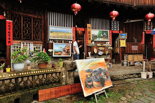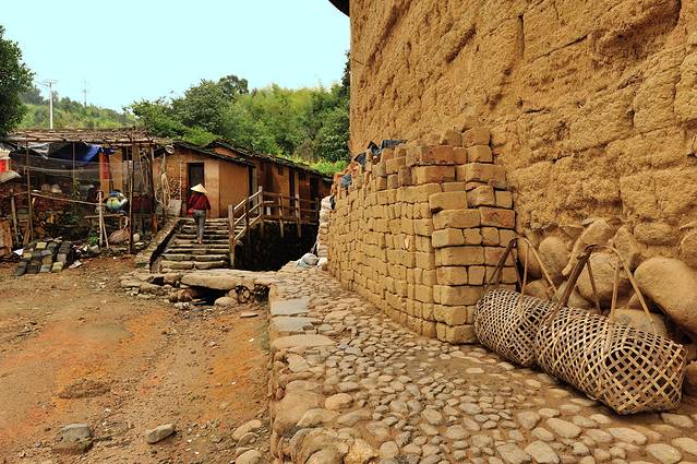 髙北村不似城镇那般,有着干净整齐的街道。村子里那些灰黄的墙面和斑驳的石子路,在外人看来也是“土里土气”的。但是少了城市的那份喧嚣,没有了城市钢筋混凝土的视觉干扰,土楼村带给大家的绝对是纯纯的视觉美学上的享受。