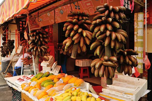 村口的水果店极具南国风情。成把的红皮香蕉,对于来自北方的我还是第一次见到。