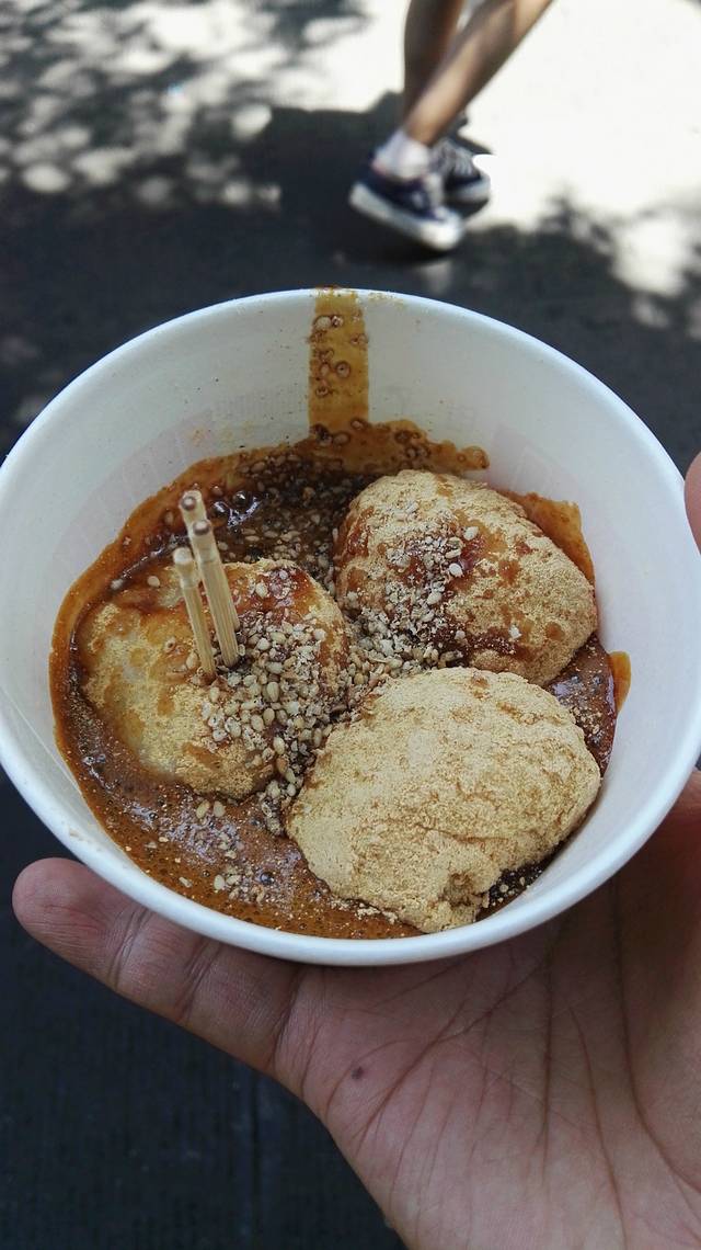从川博出来已经中午12点了,出门右转50米乘坐82路车直达锦里。锦里古街人挤的像沙丁鱼罐头,沿街都是小吃,吃了个三大炮,喝了碗醪糟,三大炮主要是好玩,味道一般。