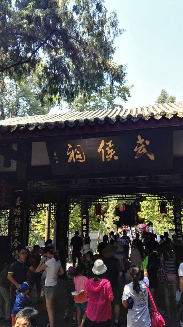 武侯祠是刘备墓和诸葛亮庙的合并建筑群,就在古街锦里旁边,解决了午饭,直接领了电子票进入武侯祠。如果没有深厚的三国历史底蕴,武侯祠里必须要有解说才能看的明白,(可直接去解说点私下里找个成团的解说员,然后........)自己请个解说要200块。武侯祠大约要1小时可以逛完。